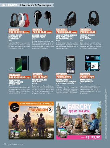 LANÇAMENTO Ofertas válidas de 07/03/2019 a 28/04/2019, ou enquanto durarem os estoques. Imagens meramente ilustrativas. O estoque e os preços de produtos deste informe publicitário estão sujeitos à alteração sem aviso prévio.
