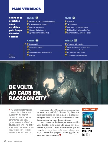 segurança e tranquilidade vos gráficos e novas habilidades. Todo cuidado é pou- EVIL 2- PS4