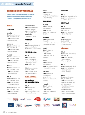 68 MARÇO E ABRIL DE 2019 Programação sujeita à alteração.