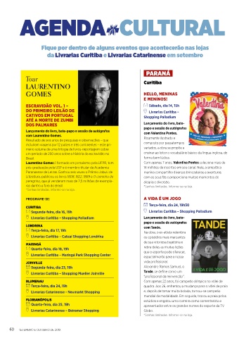 da Livrarias Curitiba e Livrarias Catarinense em setembro